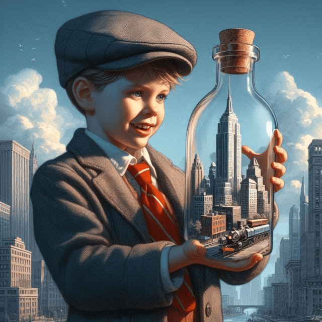 I found an old bottle half buried in the muddy banks and after digging it out and cleaning it in the dirty water I saw a town inside the bottle. It was perfect! I ran back to the car and gently placed it on the back seat and then tried to clean the mud off my trousers.