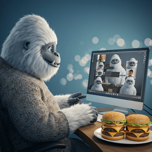 Zoom is my pet Yeti that loves to be online. His hobbies include being in a taboo group that meet once a week to discuss things they do, where he eats a cheeseburger in paradise. [35]