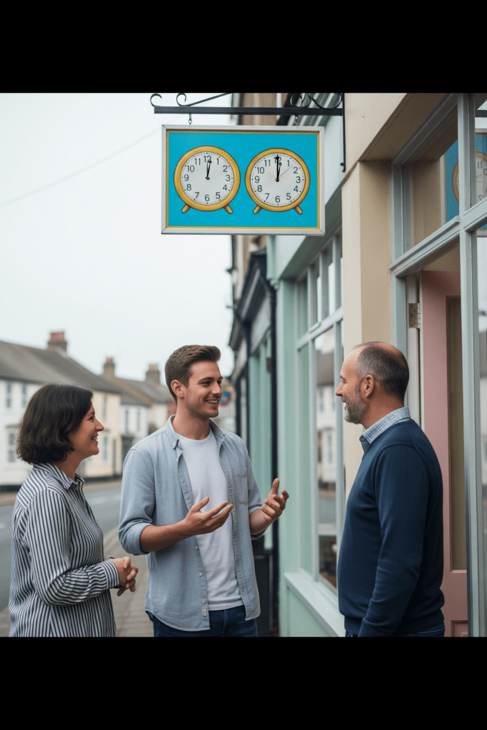 After earning a degree in horology he moved back to his hometown. As his parents stood on the sidewalk he opened his new shop. The sign above the door was a set of clocks pointing at twelve. He felt happier than Cooter Brown sitting in a fishin’ hole on the Alabama river.