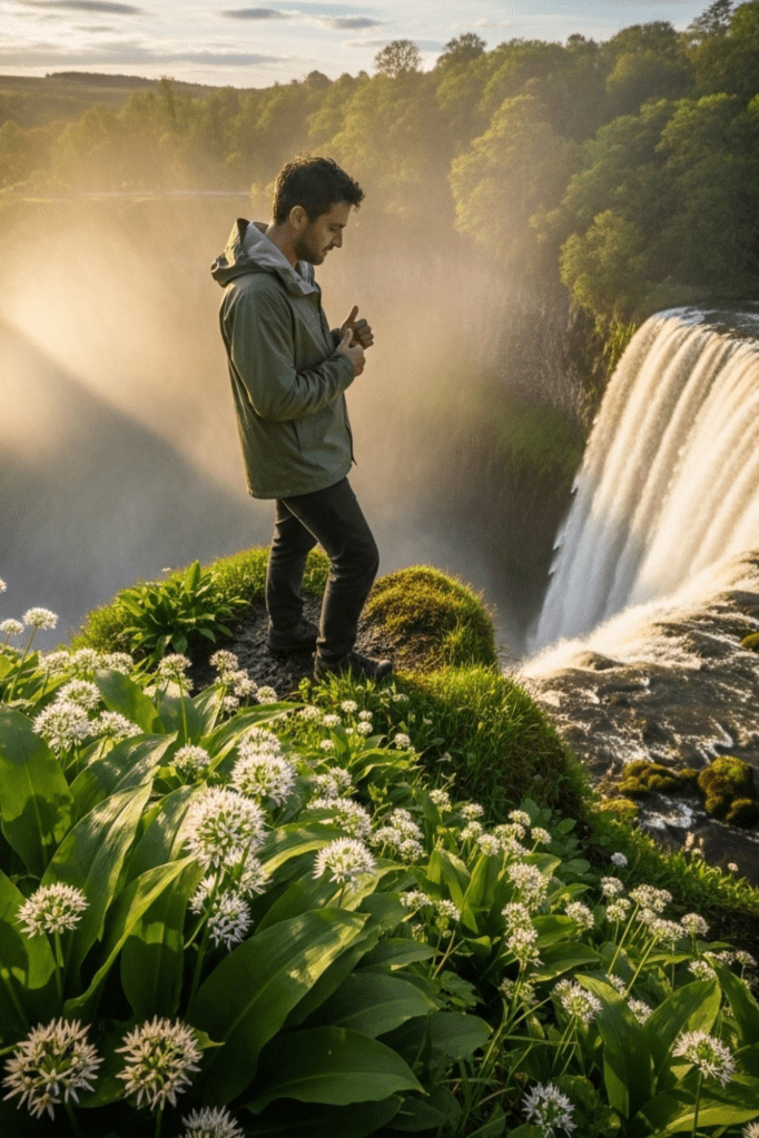 I was standing at the top of a mountain waterfall twiddling my thumbs when I spotted some wild garlic growing. I was completely dumbfounded by this discovery and quickly picked some to take home, where I ground it up and added it to my vitamin intake. [46]