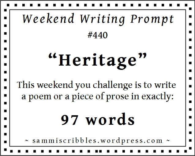 Weekend Writing Prompt #440: This weekend your challenge is to write a poem or a piece of prose in exactly 97 words using the word โHeritageโ.