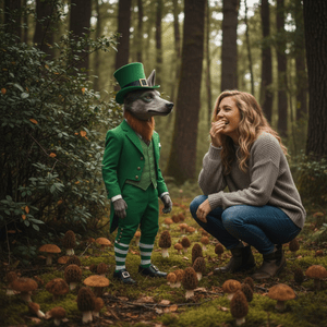 At first Joan was startled at the sight but upon closer examination she started to giggle and then laugh out right. She had heard stories all her life about the elusive Dogman, a werewolf-type creature reported in Michigan, particularly in the northwestern Lower Peninsula, since the late 1800s but she never expected this. The Dogman was only three feet high and dressed like a leprechaun.