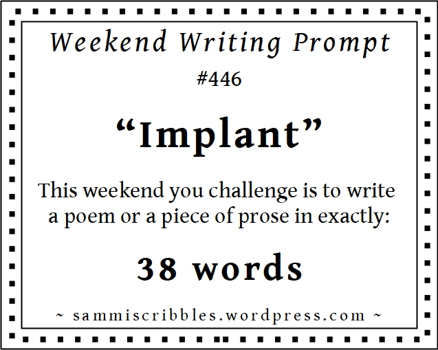 SCWWP Weekend Writing Prompt #446: This weekend your challenge is to write a poem or a piece of prose in exactly 38 words using the word โImplantโ.