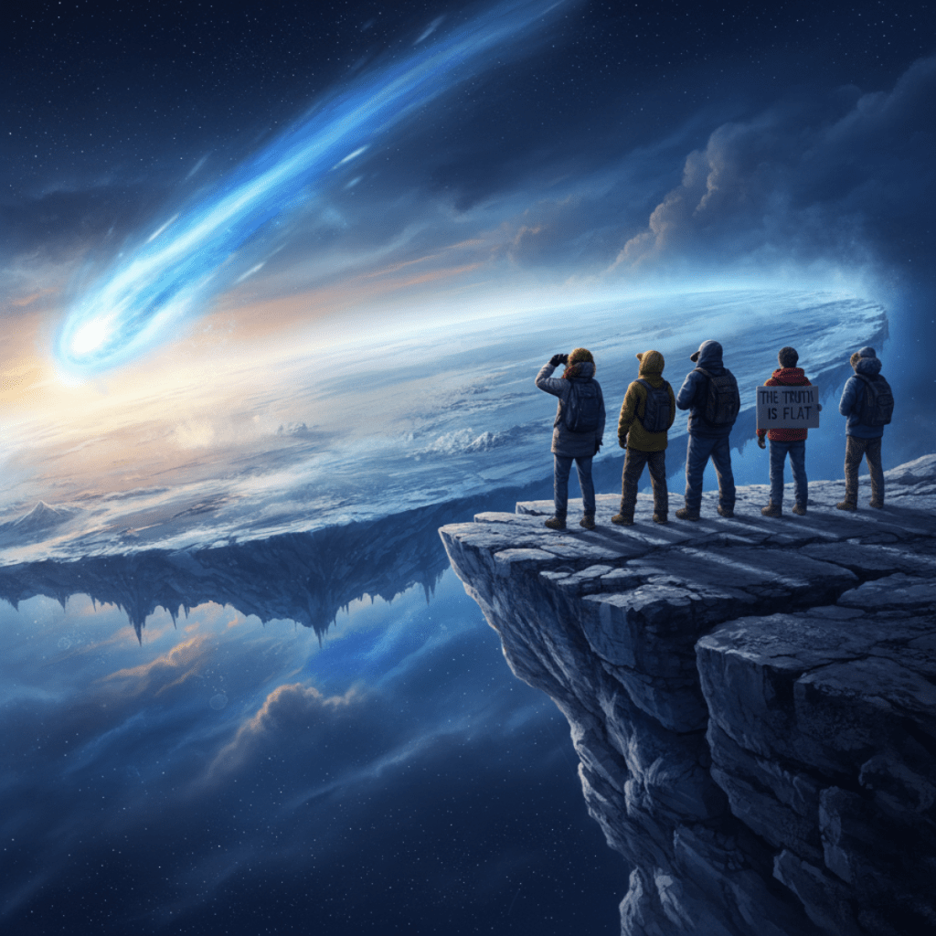 In other news this morning… A new report has surfaced that claims the comet 31/Atlas is in reality a spaceship using the look of a comet to sneak up on earth and destroy us. Any Flat-Earther’s that wish to see this should go to the end of the earth, bend over and kiss your silly ass just for general purposes.