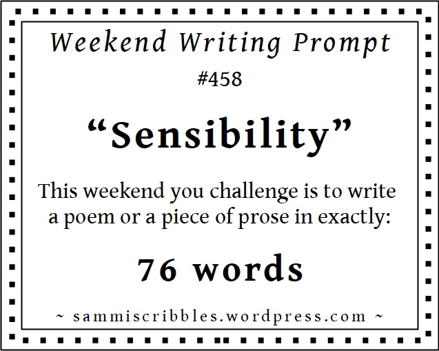 Weekend Writing Prompt #458: This weekend your challenge is to write a poem or a piece of prose in exactly 76 words using the word “Sensibility”. ✅
