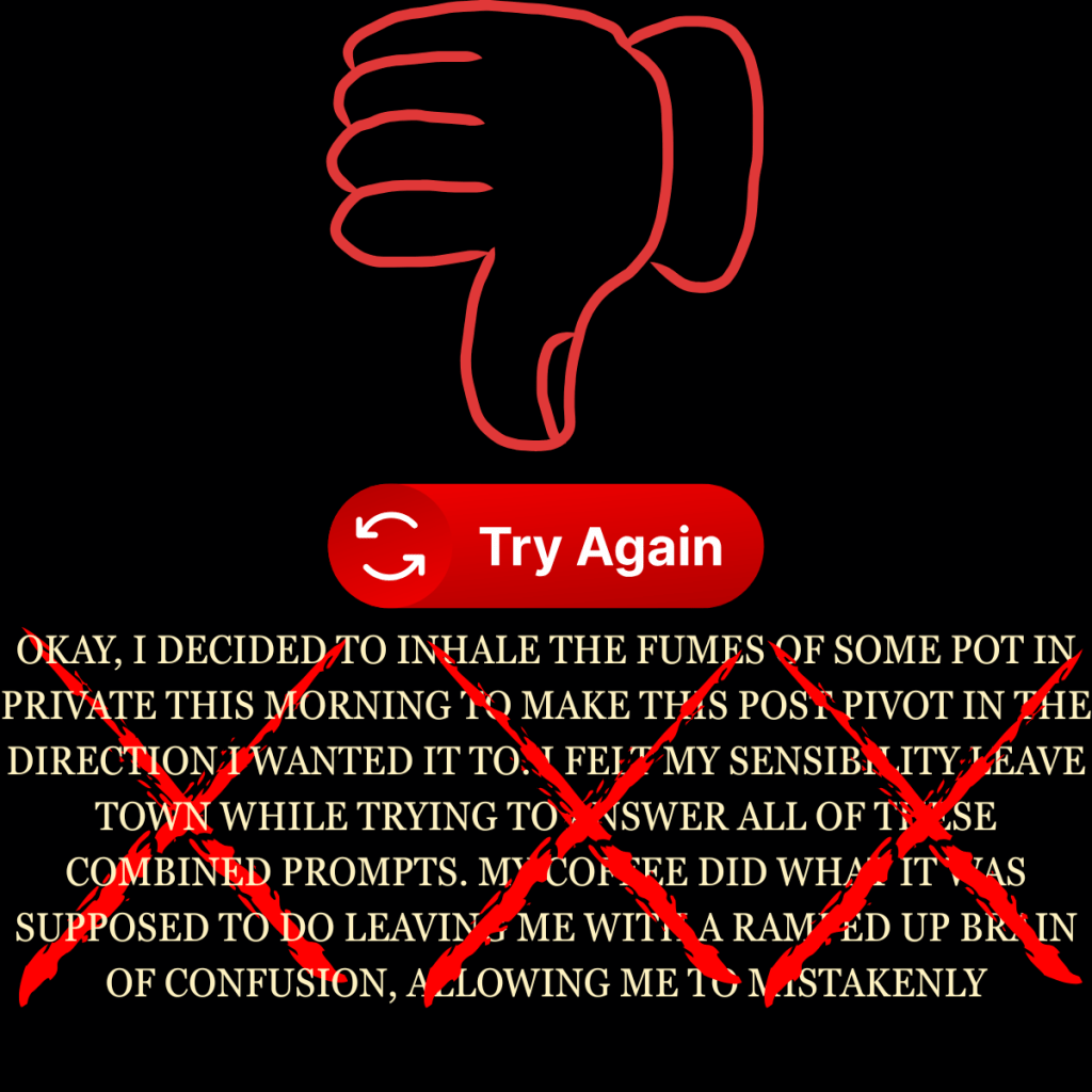 I failed repeatedly this morning on putting prompts together so this is what it is.