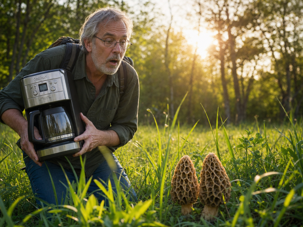 I found a Cuisinart for $20 a damn good deal I think. As I was headed back I found two moral mushrooms and was damn quick to pick them and look around for more. The day was cloudy and not real warm [low 60s] so I was surprised to find them
